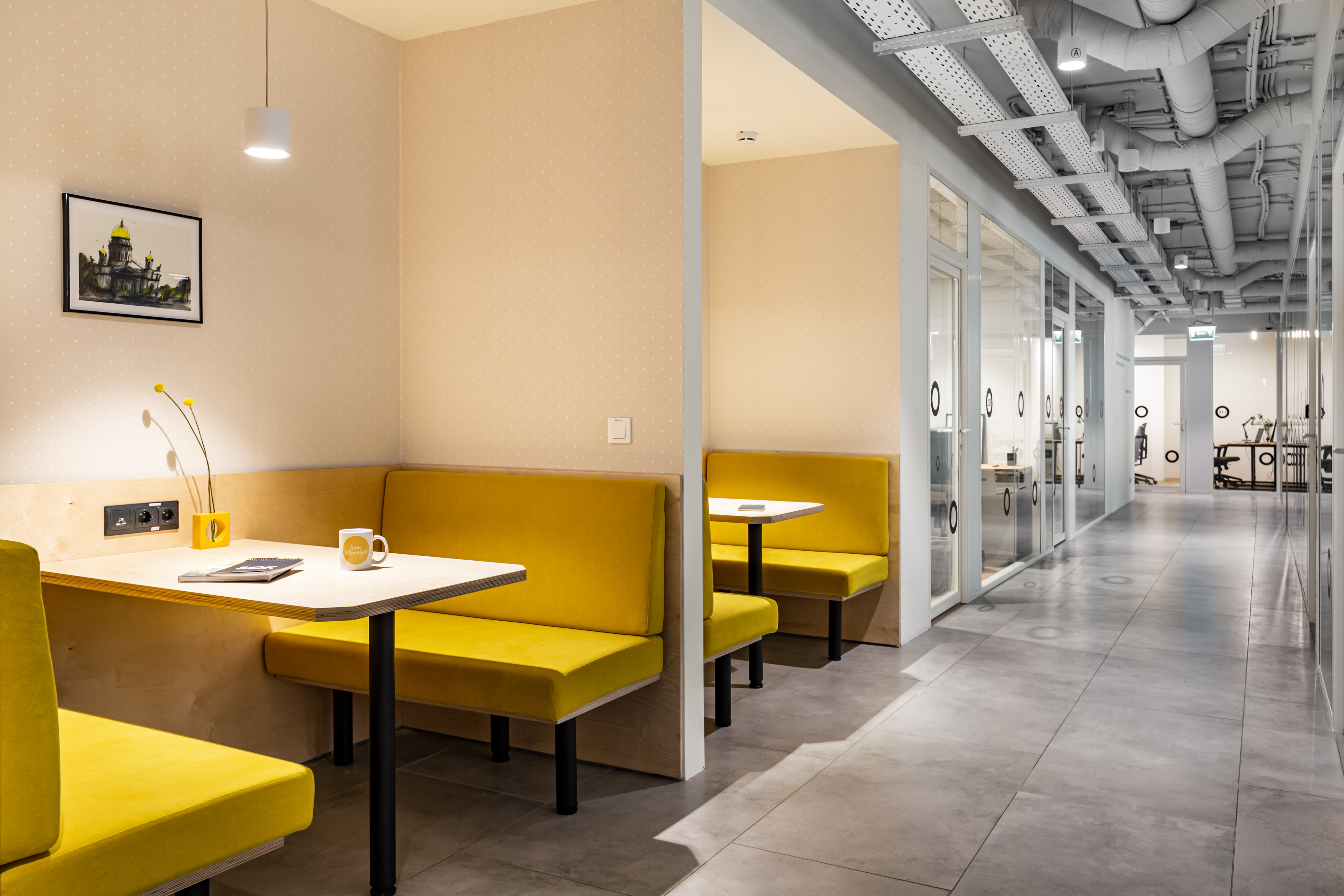 Классный коворкинг! Есть ВСЁ, чтобы думать только о работе. Не преувеличу , если скажу, что коворкинг нового поколения. Всё продумано до мелочей, организаторы позаботились об этом. Доступ по Face ID, диванная зона с розетками прямо на диване, Cofee Point зона с холодильниками, столами и посудой, микроволновки( в кухонной зоне также есть розетки в полу- можете здесь работать), кофемашина при постоянном наличии молока для капучино( кофе очень вкусный, по вкусу как у меня дома, а может даже лучше), наворочанный аппарат с водой, который нагревает, охлаждает, газирует воду, есть вода с лимоном, фрукты по четвергам