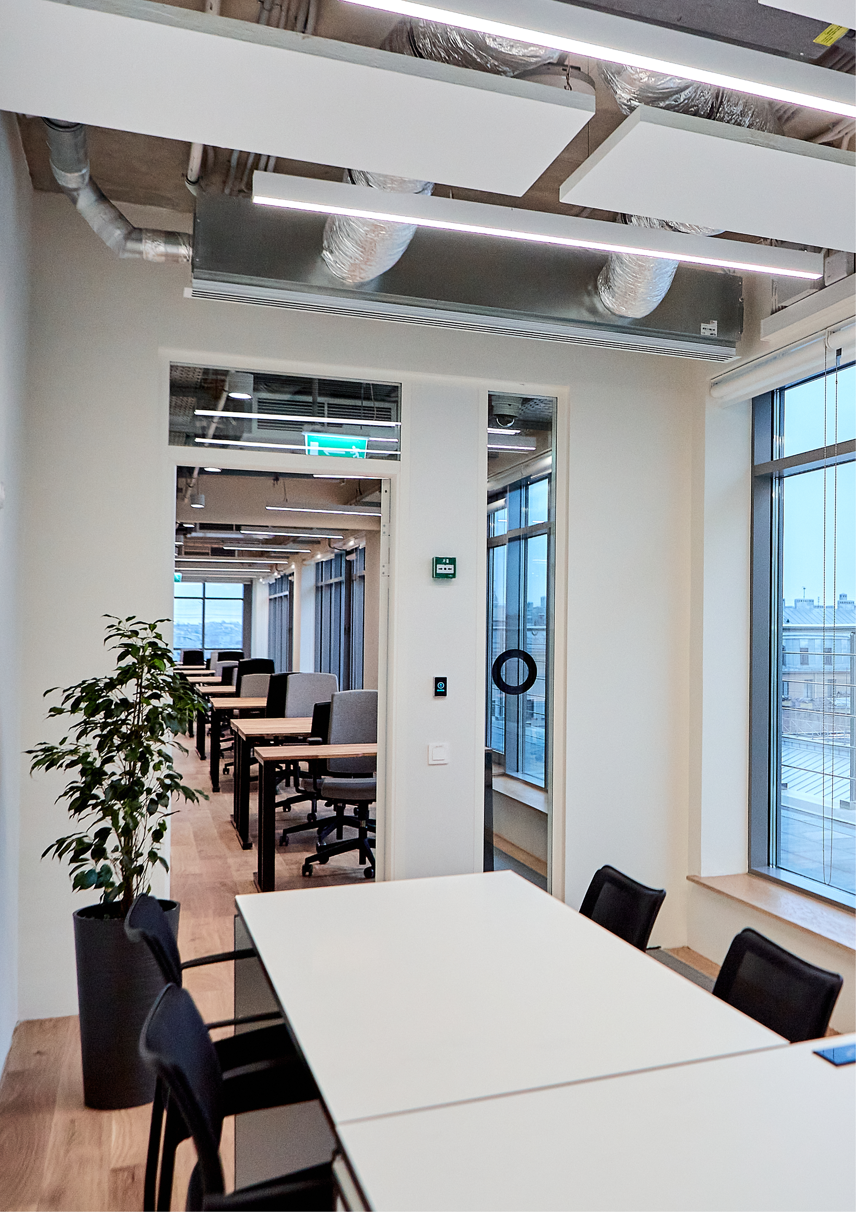 Переговорки бронируются дистанционнно и есть все необходимо для онлайн конференций. Skype-room c шумоизоляцией, вентилицией, розеткой и магнитной стеной (это что-то)